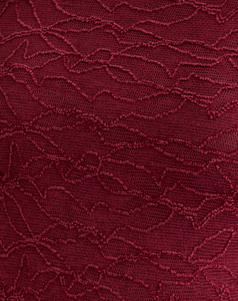 The Aven top in a red textured knit, features a regular length, bodycon fit with a scoop neckline and long sleeves.